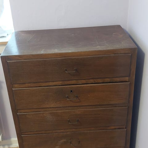 Kommoden er 67 cm høj, 76 cm bred og 52 cm dyb.