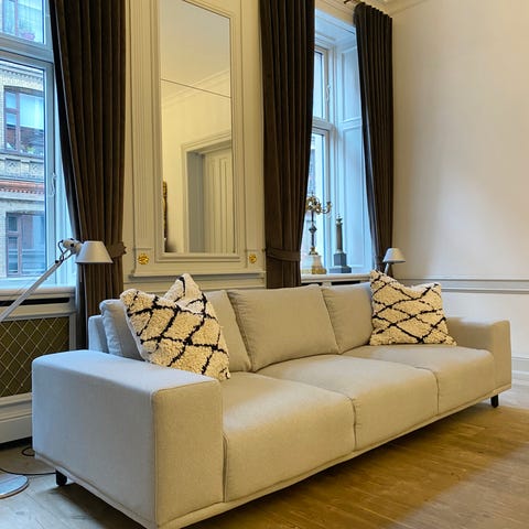 Usædvanlig flot sofa der passer perfekt til både den store elegante og stilrene funkis Hellerup-villa og den imponerende 7-værelses Østerbro-lejlighed med både stuk, profilerede fløjdøre høje paneler.
