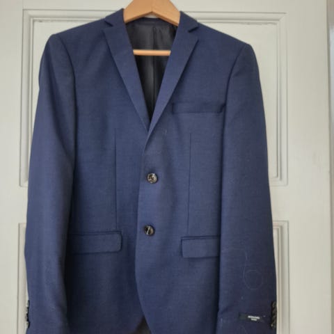 Konfirmationssæt helt uden brugsspor. Sælges som sæt bestående af hvid skjorte og flot mørk blå jakke og bukser. I polyester/uld, så det ikke krøller og skjorten er strygefri og i str . XXS. Passer til en dreng på ca. 165-170 cm.