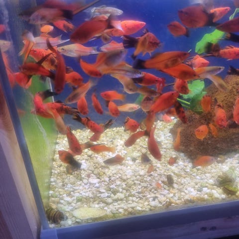 I sell urgent the aquarium, if you are interested, you are wellcome to come and take all the fish you want : 2 angel fish, 2 ancistrus, 2 platys, 3 guppies, neon tetra, corydoras.