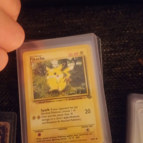 Forskellige Pokemon kort med Pikachu eller hvor Pikachu er med på kortet