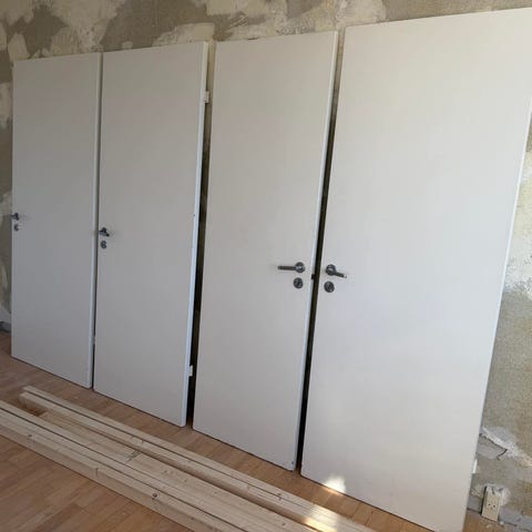 Massive trædøre, uden karme.