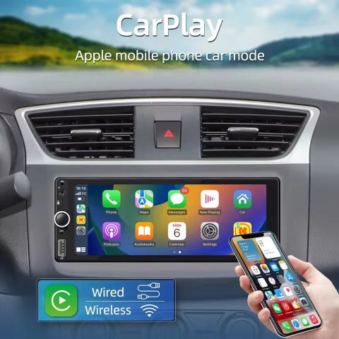 Hikity 5 tommer bilradio 1 Din trådløse Carplay Android Auto, Touchscreen Bilradio med Skærm Spejl Link Bluetooth Håndfri 2USB Type-C Bakkamera