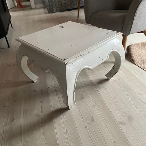 Lyserød bord. Mål: 55 cm x 55 cm. Højde 45 cm