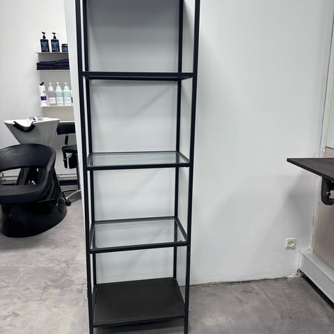 IKEA VITTSJÖ reol 100x175 cm i sortbrun metal med hylder i glas. Reolen har en bredde på 100 cm, en højde på 175 cm og en dybde på 36 cm. Hyldeafstanden er varieret, hvilket giver plads til både mindre og større genstande. Egnet til opbevaring og udstilling i fx stue, kontor eller værelse.