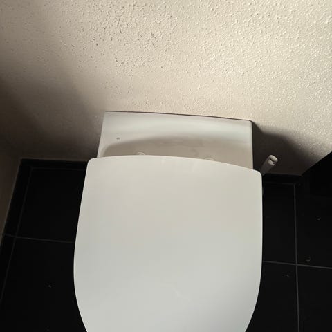 Toilet med integreret cisterne i hvid. Gulvstående model med skjult afløb bagtil og topbetjent skylleknap på cisternen. Leveres med toiletsæde og låg som vist på billederne. Velegnet til montering i badeværelse eller gæstetoilet, hvor der ønskes et kompakt, fritstående toilet med indbygget skyl.Soft Close sæde som ny.