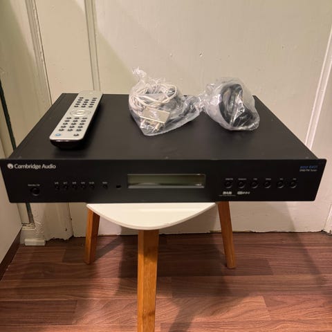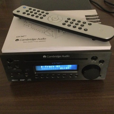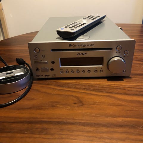Sælger en Cambridge Audio One+ i sølv – et kompakt og stilrent alt-i-ét anlæg med CD-afspiller, DAB/FM-radio og indbygget forstærker. Perfekt til dig, der ønsker god lyd i et pladsbesparende format.