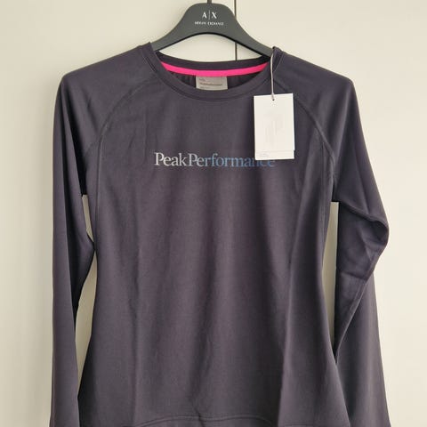Peak Performance Wgallogls løbetrøje til kvinder i størrelse M. Langærmet model i blå farve med rund hals og Peak Performance-logo på brystet. Trøjen er designet til løb og anden træning, med let og funktionelt materiale, der giver bevægelsesfrihed. Velegnet som lag under jakke eller alene ved mildere vejr.