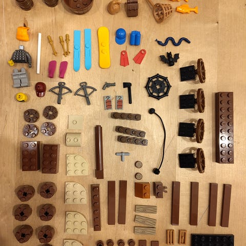 LEGO Ideas Ray the Castaway byggesæt. Sættet forestiller en lille øde ø med hytte, palmer, strand og vandområde samt tilbehør som båd, stige og forskellige detaljer til ø-livet. Indeholder mindst én minifigur og flere små byggeelementer til at skabe en strand- og overlevelsesscene. Egnet til LEGO-samlere og byggeprojekter for ældre børn og voksne, der ønsker et tematisk ø-eventyr i LEGO Ideas serien.