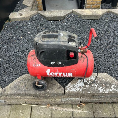 Oliefri kompressor på 8.6 bar, 0.72 HP, 4 l. tank, eff. 46 l/min., 90 db(A).