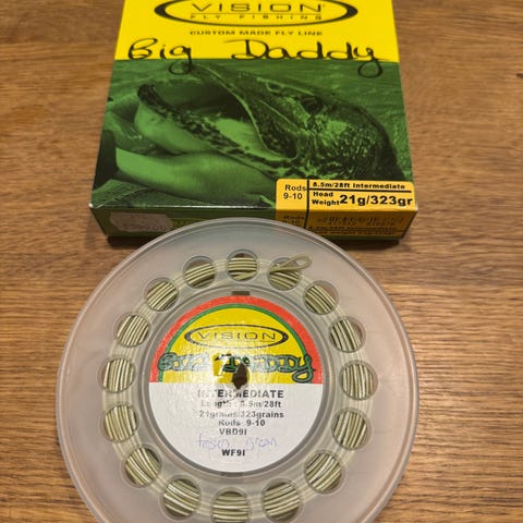 Ny og ubrugt Vision Big Daddy flueline WF9 i synk 5. 21 grams hoved. Linen er blå og leveres på spole. Egnet til fluefiskeri, hvor der ønskes en synkende line til eksempelvis gedde- eller predatorfiskeri. Kan sendes plus fragt.