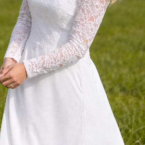 Jeg sælger min flotte konfirmationskjole, som er købt i Fuhrmanns, dengang de stadig solgte konfirmationskjoler.