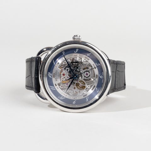 Et raffineret og teknisk imponerende ur fra Hermès, hvor håndværk og mekanik smelter sammen i et elegant, transparent design. Den åbne skive afslører værkets fine detaljer og giver et levende indblik i urværkets præcision og konstruktion.