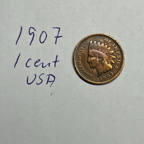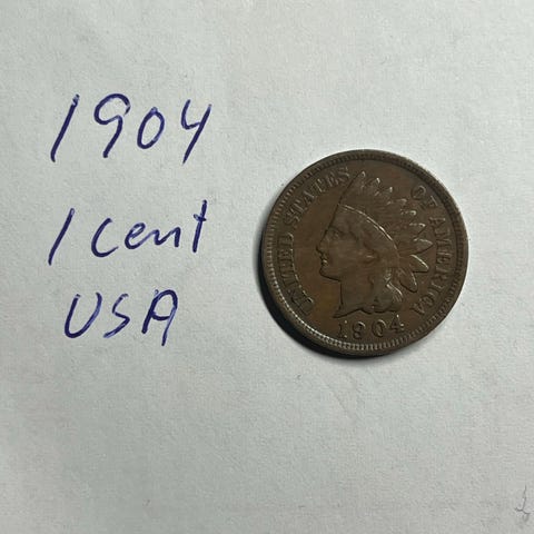 USA Indian Head 1 cent mønt fra 1903. Forsiden viser et portræt med fjerprydelse og årstal 1903, bagsiden har teksten "ONE CENT" omgivet af en krans og et skjold øverst. Mønten er i kobberfarvet metal og er egnet til samlere af amerikanske mønter og historiske mønter fra begyndelsen af 1900-tallet.