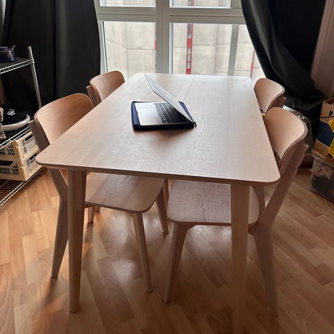 Sold table and no longer need these two chairs. Both chairs are in good condition with only one minor repair that does not affect their usability. Pick up near fisketorvet.