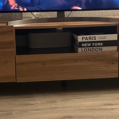 Kun haft i en uge. Sælges, da vi vil have større tv og dermed større tv bord. Helt nyt og fejler ingenting. Rigtig fin og flot, kan både styles åbent eller lukket.