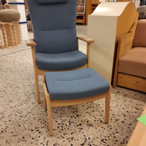 Stolen har en blød, polstret sæde og ryg i stof samt en træramme. Den er funktionel og moderne.,Afhentes i:,Røde Kors Aalborg (851),Bemærk at mail, chat og beskeder ikke besvares, og varen skal købes på knappen "Gå til varen"