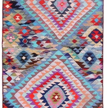 Armensk Kilim-tæppe, Kelim Modern Caucus Kilim – Vintage Armenian Art, håndsyet uld på bomuldsgulv, 245 × 135 cm, i meget god stand og professionelt rengjort, 21. århundrede, oprindelse Armenien. Klik på den blå "gå til varen" knap, for at købe eller byde på denne vare. Den samlede pris vil blive vist inden du afgiver dit bud.