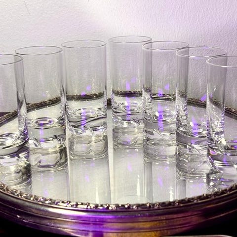 Hvert glas har en håndgraveret blomsterdekoration og geometriske detaljer opnået gennem diamantbearbejdning.