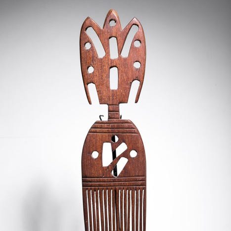 Træskulpturel lås fra Mali af Bamana-folket, også kaldet Ko, Konbalabala eller Konbarabara, i form af en firben med lang hale, 78 cm høj, 10 cm bred, 8 cm dyb, leveres med stand, i fremragende stand, fra Marshall & Caroline Mount-samlingen ( erhvervet i 1970'erne ). Klik på den blå "gå til varen" knap, for at købe eller byde på denne vare. Den samlede pris vil blive vist inden du afgiver dit bud.