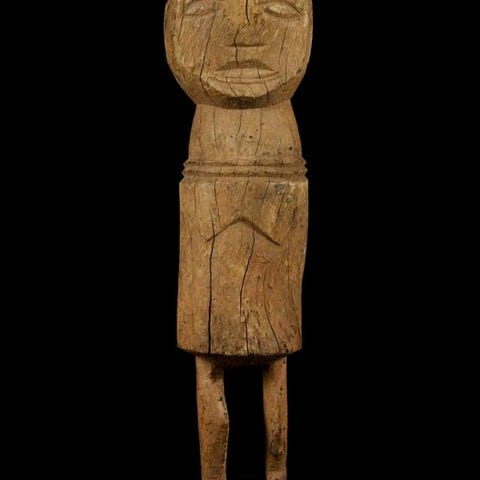 Forfædrefigur, en Fon Botchoi af akacietræ fra Togo, seneste halvdel af det 20. århundrede, ca. 34 cm høj, leveret med stand, i god stand, fra privat samling. Klik på den blå "gå til varen" knap, for at købe eller byde på denne vare. Den samlede pris vil blive vist inden du afgiver dit bud.