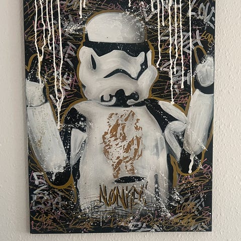 Værket genfortæller myten om Vader ikke blot som et symbol på magt og mørke, men som et emblem på indre konflikt, hængende mellem ødelæggelse og forløsning i et landskab, der synes at være opslugt af krig og minder.