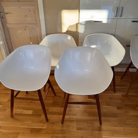 Jeg har desværre forelsket mig i nogle andre, derfor sælges disse. Prisen er 3500 pr stol. Jeg vil helst sælge samlet