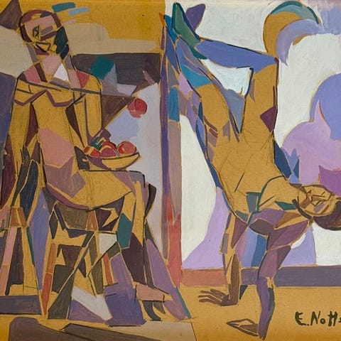 Emilio Notte værk Mille og en nat, udført i blandingsteknik på papir, originaludgave fra 1950’erne, 57 x 40 cm, underskrevet nederst til højre og sælges med ramme. Klik på den blå "gå til varen" knap, for at købe eller byde på denne vare. Den samlede pris vil blive vist inden du afgiver dit bud.