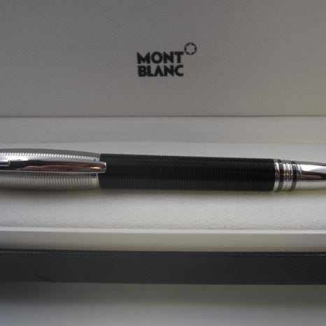 Montblanc Starwalker blå pen i ædelharp resin med platinbelagt clip, 13 cm lang og 1 cm i diameter, lavet i Tyskland, serienummer gravlagt i clippen, med fyldt patron og etui, i god brugt stand. Klik på den blå "gå til varen" knap, for at købe eller byde på denne vare. Den samlede pris vil blive vist inden du afgiver dit bud.