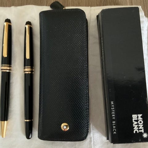 Alle genstande er brugte, men i meget god samlet stand og kan vise tegn på slid. Rollerballpenen og den mekaniske blyant har en engravering