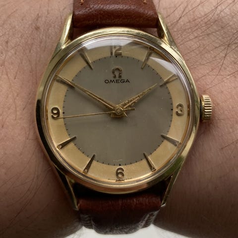 Denne Omega ref. 2903-17 er et fint eksempel på Omegas underspillede elegance fra de tidlige 1960’ere — en periode defineret af designets klarhed, afbalancerede proportioner og mekanisk integritet. Fri for unødvendig pynt, spejler uret den stille selvtillid, der gjorde Omega til et respekteret navn i denne æra.