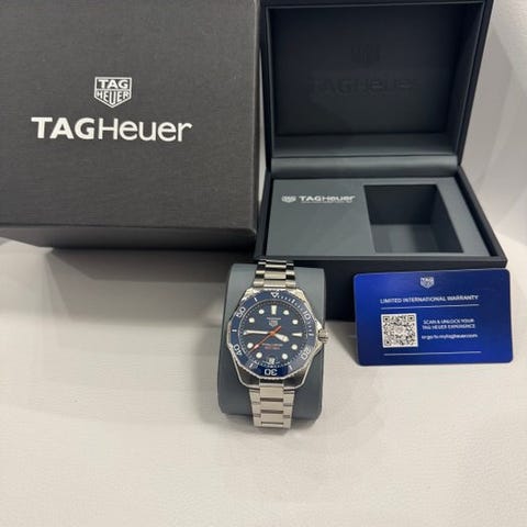 Tag Heuer Aquaracer Professional 300 Date, reference WBP5111.BA0013, automaticur herreur i rustfrit stål med blå skærm og 43 mm urkasse, produceret i 2024, nyt med komplet sæt inkl. æske, papir og garanti. Klik på den blå "gå til varen" knap, for at købe eller byde på denne vare. Den samlede pris vil blive vist inden du afgiver dit bud.