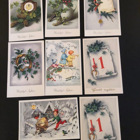En samling på 135 Fantasie-kort med tema Nytår/helligdage, dateret 1910–1930, alle i fremragende stand og scannede. Klik på den blå "gå til varen" knap, for at købe eller byde på denne vare. Den samlede pris vil blive vist inden du afgiver dit bud.