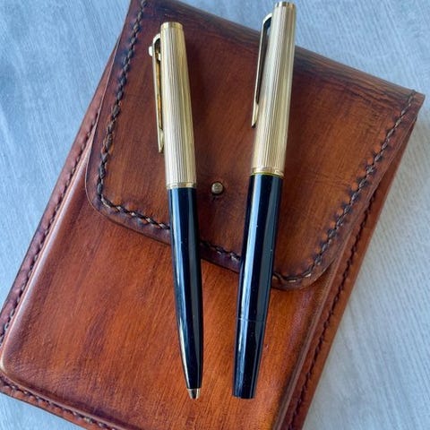 Smukke penne Sheaffer Targa, sølvbelagte og forgyldte detaljer i fremragende stand
