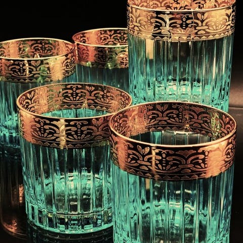 Det drejer sig om Bohemia-krystal dekoreret manuelt i Italien; små forskelle vidner om håndværket.