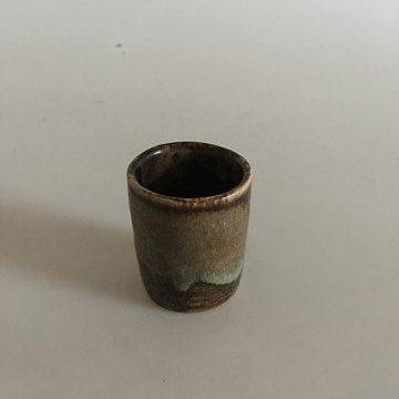Bjørn Keramik Stentøjsvase. Nistret råhvid bund med mørk blålilla grafisk dekoration. Måler 18,5 cm / 7,28 in.