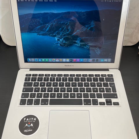 Apple MacBook Air bærbar computer med 13" skærm i guld. Modellen har fuldt tastatur med pegefelt og indbygget skærm i tyndt og let kabinet. Velegnet til almindelige computeropgaver som internet, tekstbehandling og mediebrug. Leveres i original emballage som vist på billederne.