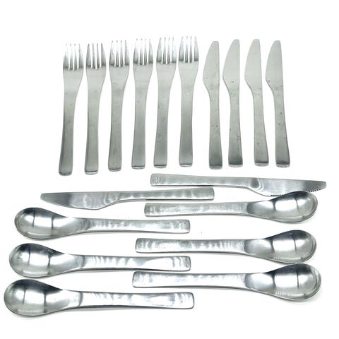 Originalt dansk designbestik fra Aida, model MO, designet af Mads Odgård. Mat rustfrit stål, minimalistisk formsprog og klassisk skandinavisk balance – et tidløst hverdagsbestik med designmæssig tyngde.