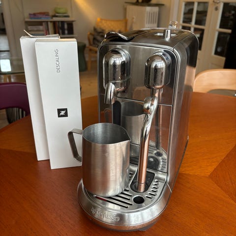 Nespresso Creatista Plus, som er 4 år gammel, har altid kørt med kilde vand og er afkalket regelmæssigt.