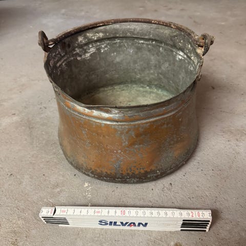 Meget gammel kobberspand. Se mål på billeder.