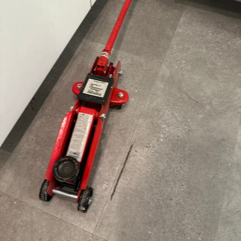 Raze 2 ton donkraft i rød farve. Hydraulisk donkraft med maksimal løftekapacitet på 2 ton, egnet til løft af personbiler og lignende køretøjer inden for den angivne vægtgrænse. Donkraften har hjul for nem positionering under bilen og løftesadel med mønstret overflade for bedre greb mod løftepunktet. Leveres med separat løftestang og transport-/opbevaringskasse som vist på billederne. Velegnet til brug i garage, værksted eller ved dækskift, hvor der er behov for stabil løftning af køretøjer inden for kapacitetsgrænsen.