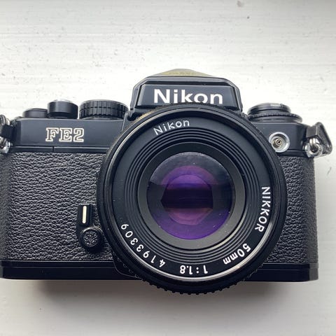 Nikon FM analog spejlreflekskamera med 50mm objektiv og motor drive