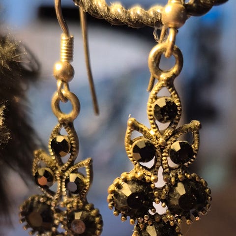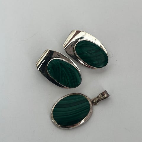 Ørehængerne er med lyse ovale Tugtupit sten hvor de andre fremstår med lidt mere farve.