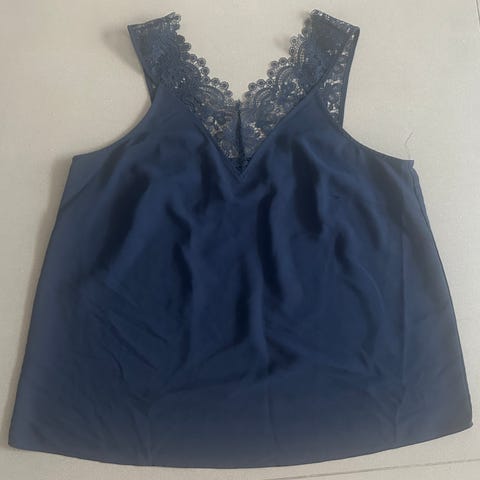 Top fra Zizzi med mulighed for bare skuldre. Bådudskæringen er dækket af en strikket blonde