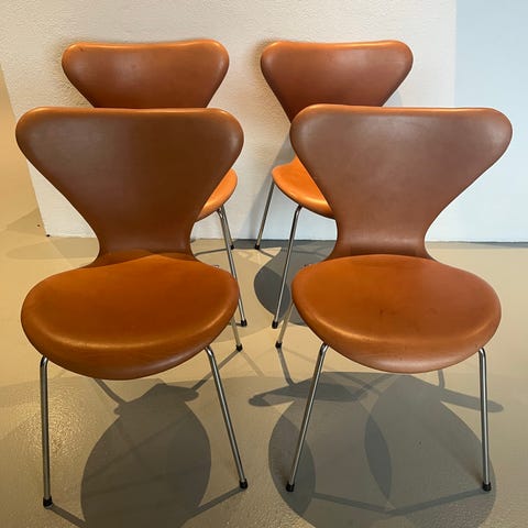 Fritz Hansen Arne Jacobsen Syveren stol med armlæn brun læder krom stel