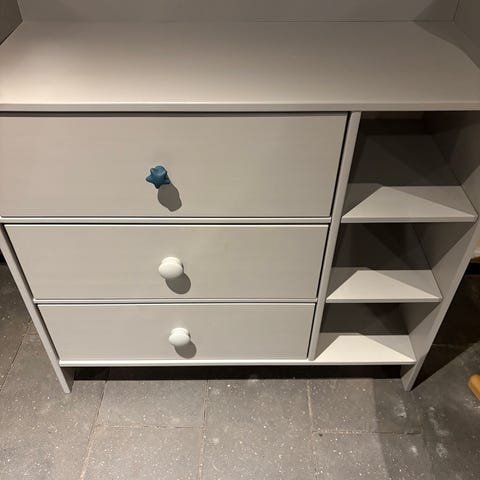 BeKids Karl Puslekommode med tre skuffer. Har enkelte brugsspor (se billeder), men fungerer helt fint.