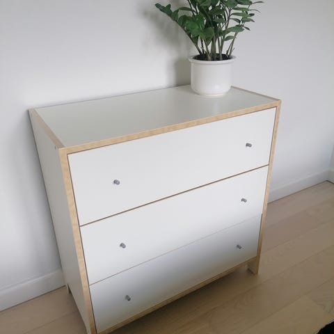 - Kommoden er lavet af spånplade