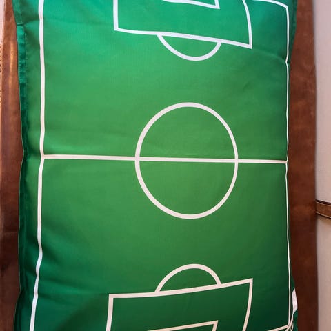 Den er velholdt , betrækket kan vaskes i maskinen , den insperer til hyggelæsning og den er plads til flere venner på en gang, den er blå og på igen måde falmet ,kun afhentning da den er så stor 120*160 cm