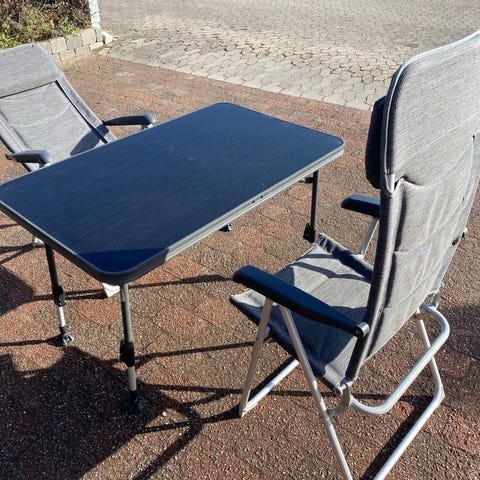 Solidt spisebord i et stilrent og moderne design. Bordet måler 90 x 138 cm og giver god armplads til 2 stole på hver side. Perfekt til fastliggere eller hvis du camperer hele sæsonen.