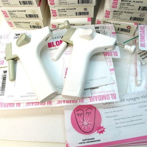 Blomdahl hul i øret kit inkl 100 øreringe pistol renseservietter mm